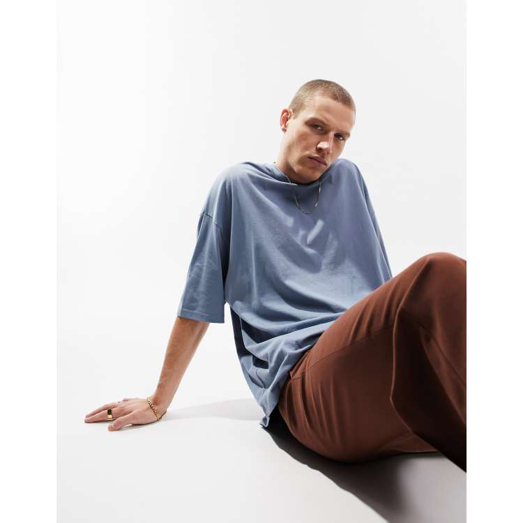Asos Design Oversized T Shirt In Gray Blue Asos